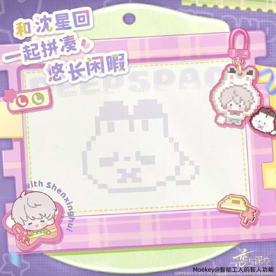 💫和沈星回一起拼凑悠长闲暇! 认真比对图纸的他,正在和你一起耐心拼凑像素图画。 用镊子夹起小小的豆子、耐心排布、对号入座……看看熨烫出的成果如何?