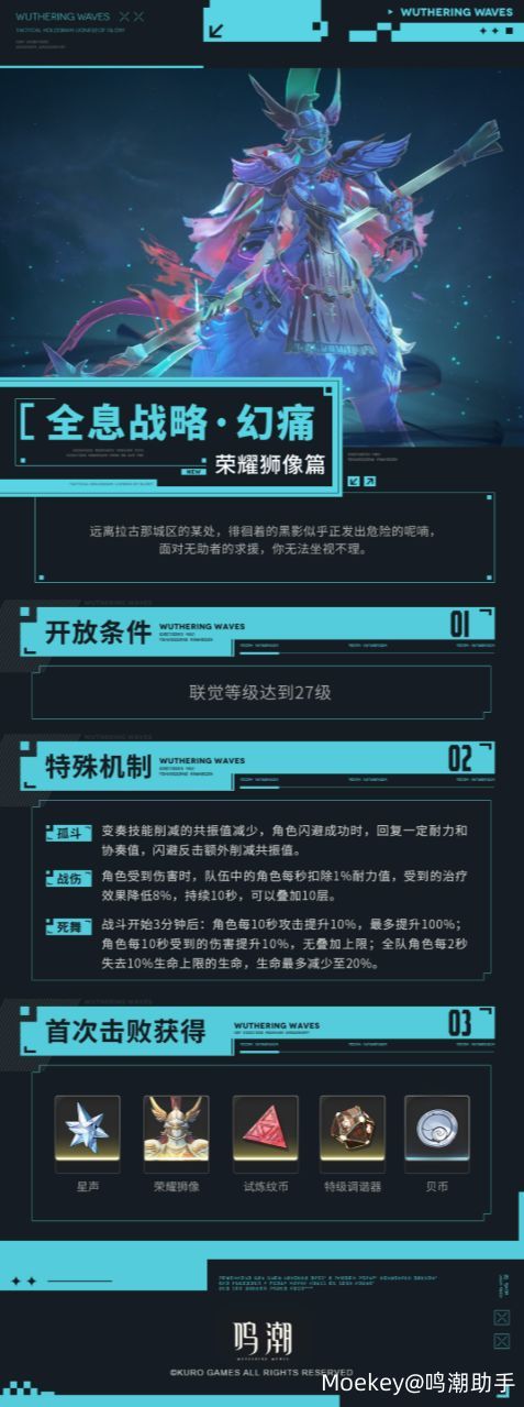 <全息战略・幻痛>是考验战斗能力的最佳场所,为漂泊者提供最强大的对手。如今,新的「全息战略·荣耀狮像」挑战将于2.7版本更新。