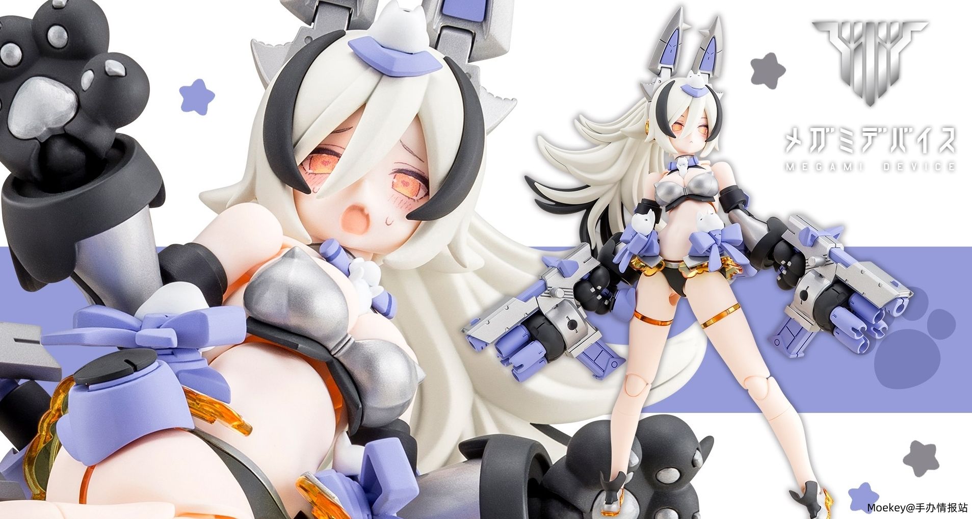 名称:メガミデバイス PUNI☆MOFU 銀ラン 属性:女 、 机甲-拼装 、 全年龄 、 可动 定价:6,930日元 (含税,344元) 出货日:2026年3月 比例:1/1 制作:寿屋 系列:女神装置 原型:福元德宝 、 浅井真纪 、 雨间 、 たすく 、 鳥山とりを 原画:BLADE 尺寸:全高约160mm 材质:PS、ABS、POM